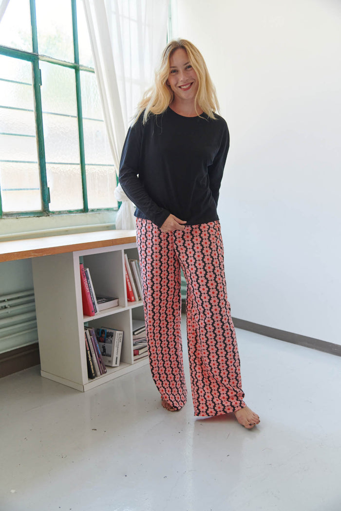 This pyjama set brings together comfort and fun in the best way. Made from organic cotton, the fabric feels light and soft on your skin. It keeps you warm during cool nights but still feels breathable.
